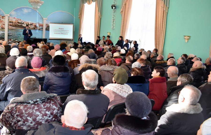В малом зале дома культуры на ул. Металлургов, 22, который администрация Тулы предоставила депутату-коммунисту для встречи с жителями, яблоку негде было упасть. Алексею Лебедеву не только не дали встретиться с людьми в большом зале, но и не смогли предоставить достаточное количество посадочных мест. Пришлось брать на встречу дополнительные стулья, которых, впрочем, тоже не хватило. Люди стояли в проходах и фойе.