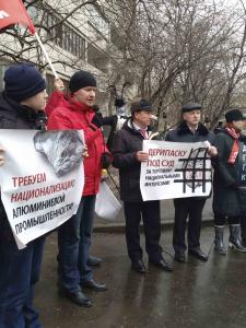 Сегодня, в Москве, у офиса компании «РУСАЛ», депутаты Госдумы от фракции КПРФ Денис Парфенов, Валерий Рашкин и Николай Зубрилин (Мосгордума) провели встречу с избирателями в связи с провокационными действиями одного из владельцев «РУСАЛА» Олега Дерипаски в отношении руководителя КПРФ Геннадия Зюганова.