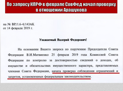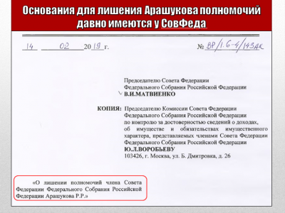 полномочия Арашукова, мною в Совет Федерации была направлена информация Генеральной