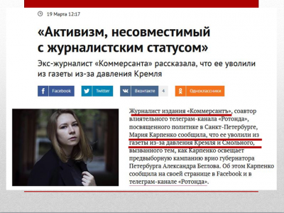 примером этому может служить увольнение журналиста издания «Коммерсантъ» Марии