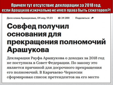 лишения его полномочий. И что бы вы думали? Арашуков из-за ареста не подал декларацию о доходах… Но это же