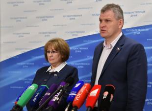 16 апреля, предваряя пленарное заседание Госдумы, перед журналистами выступили член Комитета ГД по охране здоровья А.В. Куринный и член Комитета ГД по бюджету и налогам В.А. Ганзя.