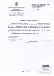 запрос в прокуратуру Краснодарского края с настоятельной просьбой провести