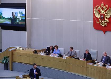 (Далее в зале пленарных заседаний Госдумы был продемонстрирован трейлер фильма «Донбасс. Окраина», - Ред.).