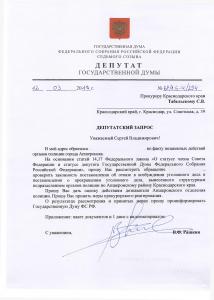 направлен новый депутатский запрос в прокуратуру Краснодарского края с