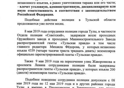 Просим Вас принять соответствующие меры и защитить права газеты «Тульская