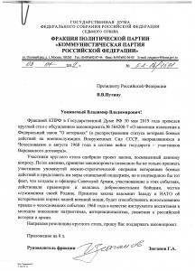 Председатель ЦК КПРФ, Руководитель фракции КПРФ в Государственной Думе Г.А. Зюганов обратился к Президенту РФ с просьбой поддержать законопроект о ветеранах чехословацких событий 1968 года. Публикуем текст обращения.