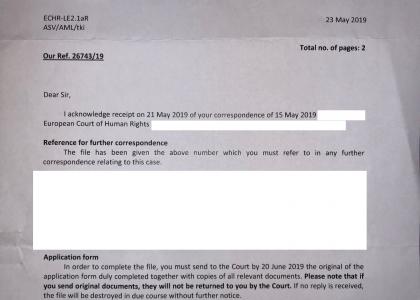 Европейский суд жалобу Рашкина принял к рассмотрению, предложив 23 мая заявителю в срок до 20 июня 2019 года подать полный текст жалобы. Однако депутат получил данный ответ из ЕСПЧ, имеющий, согласно почтовому штемпелю, все приоритеты почтовой доставки, лишь сегодня – 11 июля 2019 года, когда все сроки подачи жалобы прошли, и не по вине заявителя.