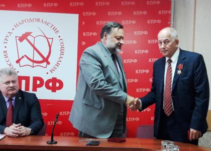 В заключение Павел Дорохин от имени ЦК КПРФ за заслуги перед партией и в связи с 70-летием вручил уважаемому региональному политику, депутату областного заксобрания Ивану Петровичу Евгенову орден «Партийная доблесть».