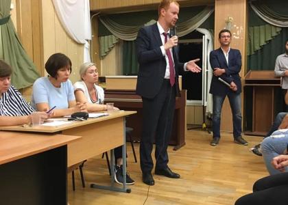 У родителей было множество вопросов, эмоции переполняли их, но никто из руководства школы и администрации не только не мог взять ситуацию под контроль, но и своими ответами не по теме еще больше раздражали родителей. Инициативу взял секретарь МГК КПРФ, депутат Государственной Думы Д.А. Парфенов. Со сцены он стал вести встречу, чтобы не допустить перерастания собрания в полный хаос.