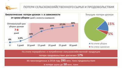 в 2018 году продовольствия теряется 50 млн. тонн. Только на этапе уборки урожая