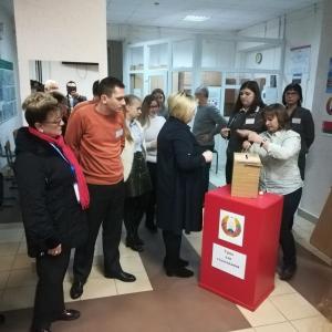 избирательного участка в гимназии №42 г. Минска, носящей имя великого учёного,