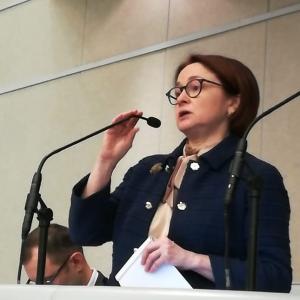Председателя Центробанка РФ Эльвиру Набиуллину, которая выступила с докладом об