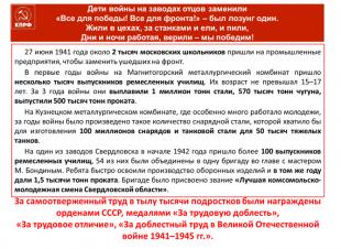 тружениках тыла – тех, кто в их возрасте работал на оборону, на