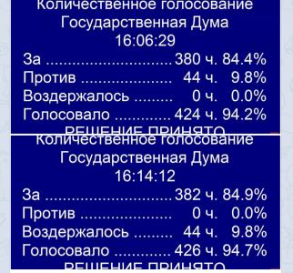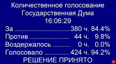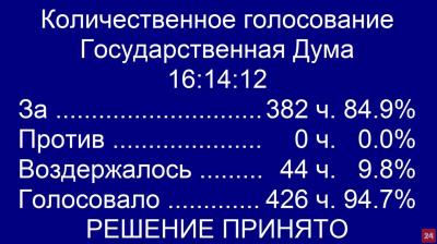 проголосовали 382 депутата, воздержались 44, против - не было.