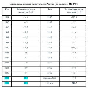 капитала из России по итогам 2019 г.