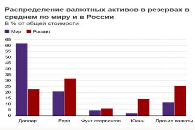 точки зрения географического распределения резервов ЦБ РФ (т.е. пропорции стран, в которых ЦБ РФ покупает