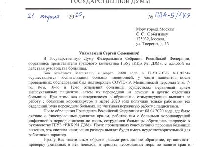 Ко мне обратились более 60 сотрудников московской Инфекционной клинической больницы №1 с коллективной жалобой на неправомерные действия руководства этого медицинского учреждения.