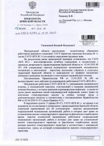В адрес фракции КПРФ в Государственной Думе поступило коллективное обращение работников «Брянской городской больницы № 1», в котором они жаловались на отказ главного врача их больницы в предоставлении стимулирующих выплат, положенных врачам за работу с пациентами, больными коронавирусной инфекцией.