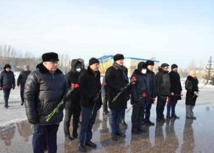 В этот же день состоялось возложение венков и цветов к Мемориальному комплексу «Отан коргаушылар». Этот монумент был сооружен в память защитников Отечества, символизирующий единство всех наций, проживающих в Казахстане, он был открыт в 2001 году. Монумент «Отан коргаушылар» – один из самых красивых в стране. Бронзовая стела с фигурой матери стоит на квадратном приподнятом основании с зелёными откосами по трём сторонам и широкой лестницей, ведущей к нему. Битва казахов с джунгарами и участие казахстанцев в Великой Отечественной войне нашли своё художественное воплощение по обеим сторонам от стелы. У подножия памятника зажжён вечный огонь, а сам монумент вознёсся в небо на высоту 24 метра.