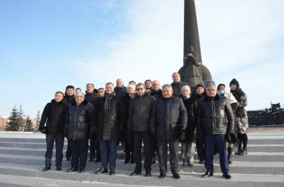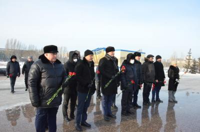 В этот же день состоялось возложение венков и цветов к Мемориальному комплексу «Отан коргаушылар». Этот монумент был сооружен в память защитников Отечества, символизирующий единство всех наций, проживающих в Казахстане, он был открыт в 2001 году. Монумент «Отан коргаушылар» – один из самых красивых в стране. Бронзовая стела с фигурой матери стоит на квадратном приподнятом основании с зелёными откосами по трём сторонам и широкой лестницей, ведущей к нему. Битва казахов с джунгарами и участие казахстанцев в Великой Отечественной войне нашли своё художественное воплощение по обеим сторонам от стелы. У подножия памятника зажжён вечный огонь, а сам монумент вознёсся в небо на высоту 24 метра.