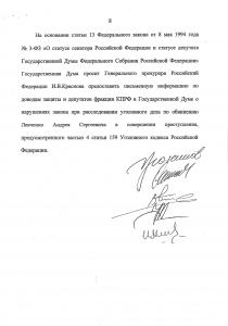 Как сообщают адвокаты, следователем назначены и проводятся по судебному делу различные экспертизы, однако в нарушение закона эти следственные действия проводятся втайне от обвиняемого и его защитников. На все нарушения обращалось внимание в жалобах и ходатайствах адвокатов, а также в запросах депутатов Государственной Думы. Однако на жалобы, ходатайства, запросы даются ответы об отказе в их удовлетворении, либо ответы не даются вовсе. На основании всего вышеперечисленного коммунисты подготовили парламентский запрос в Генпрокуратуру с требованием предоставить информацию по доводам защиты и депутатов фракции КПРФ в Госдуме о нарушениях закона при расследовании уголовного дела в отношении Андрея Левченко. Документ подписан руководителем фракции Геннадием Зюгановым, первым заместителем Председателям Госдумы Иваном Мельниковым, заместителем руководителя фракции Николаем Коломейцевым, а также депутатами Валерием Рашкиным и Юрием Синельщиковым. Для принятия запроса фракции необходимо набрать 226 голосов «за» на пленарном заседании. КПРФ будет настаивать на первоочередном рассмотрении этого запроса.