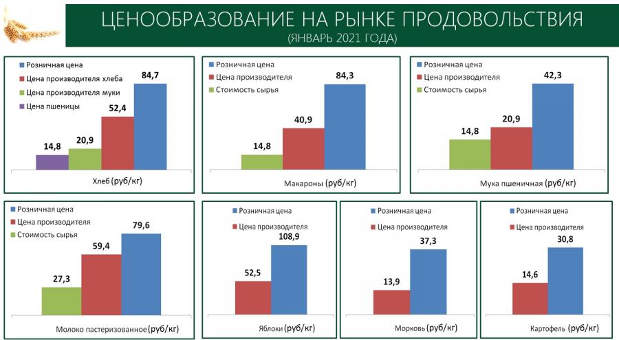 Более 70% нагрузки на семейный бюджет наших граждан оказало повышение цен на фрукты, овощи, молочные и мясные продукты. Хлебобулочные изделия - это всего 5% от общего увеличения расходов на продовольственную корзину.