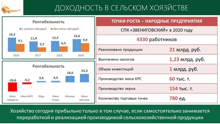 Красное мясо и многие другие направления находятся в минусовой зоне. И только с субсидиями ее удается удержать в плюсе. Но, друзья, если зарплату сделать на уровне средней по экономике, то все сельское хозяйство будет в убытке.