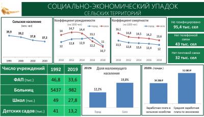 Посмотрите, кого мы грабим, посмотрите, какая зарплата на селе, она почти в два раза ниже, чем в среднем по экономике. Посмотрите, что стало с больницами, детскими садами. Посмотрите, что с дорогами, газификацией и прочим. Бедность страны представлена сегодня лицом аграрников, кормильцев нашей державы! Это же видно – в городе доля малоимущего населения 12%, а в деревне 20%. Аналогичное соотношение по коэффициенту смертности и рождаемости.
