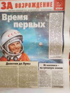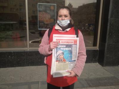«КПРФ: время первых! 60 лет первого полета в космос» - ярко-красные биг-борды с таким слоганом украшают улицы Воронежа. А вчера на оживленных перекрестках города появились молодые студенты с праздничным выпуском газеты Воронежского обкома КПРФ «За возрождение». Раздавали газету и в районных центрах области – в Острогожске, Кашире, Хохле, Калаче, Россоши, Кантемировке, Эртиле и других городах.