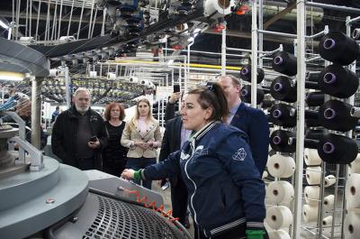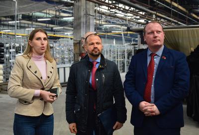 Первая часть мероприятия прошла на новом текстильном предприятии «Блэкрам», специализирующимся на производстве трикотажных тканей. Начальник отдела кадров предприятия Дарья Королева провела для гостей интересную экскурсию по цехам, рассказала об особенностях производственного процесса. По ходу экскурсии она отвечала на вопросы о численности рабочих и рынке продукции, о перспективах и очистке производственных стоков, задаваемые Р.М. Лябиховым и А.Д. Бойковым.