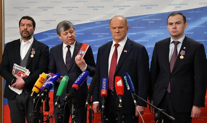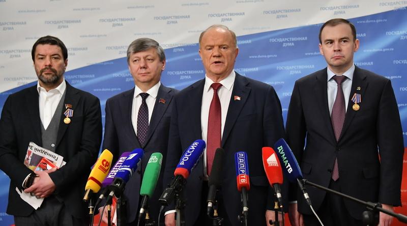 13 апреля, предваряя начало пленарного заседания в Госдуме, перед журналистами выступил Председатель ЦК КПРФ, Руководитель фракции КПРФ в Госдуме Г.А. Зюганов и ряд депутатов фракции КПРФ.