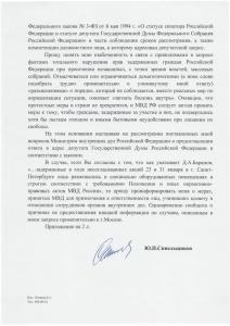 Не буду комментировать данные мне разъяснения руководителя названного подразделения органов внутренних дел, к которому я не обращался. Обращаю лишь Ваше внимание на необходимость исполнения требований Федерального закона №3-ФЗ от 8 мая 1994 г. «О статусе сенатора Российской Федерации и статусе депутата Государственной Думы Федерального Собрания Российской Федерации» в части соблюдения сроков рассмотрения, а также компетенции должностного лица, к которому адресован депутатский запрос.