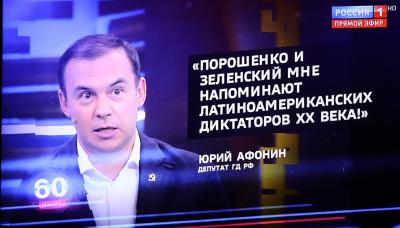 В студии показали сюжет с участием бывшего президента Грузии и губернатора Одесской области Михаила Саакашвили. Он рассказывал журналисту, что в 2014 году американский генерал Петреус указывал ему подходящий момент, когда надо захватить Донецк, но украинские власти не воспользовались советом. Юрий Афонин заметил, что уж Саакашвили-то «крупный специалист» по возвращению потерянных территорий: всем памятна его «операция» по взятию Цхинвала, которая завершилась жеванием галстука и русскими танками в 15 километрах от Тбилиси. Тоже, видимо, какой-нибудь американский генерал подсказал.