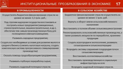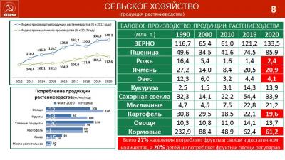 У нас в программе КПРФ четко записана отдельная отраслевая программа. Комплексная программа развития сельских территорий, второй Целины. Я об этом попозже скажу.