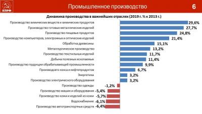 Следующий слайд. При этой политике состояние промышленности. Вот нефтехимия в плюсе, а все, что касается остального, в минусе.