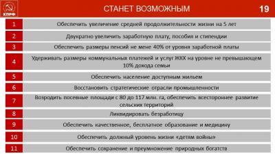 Позвольте, я расскажу коротко суть нашей программы. Конечно, в центре программы КПРФ стоит человек труда. Его мы рассматриваем как главного в компоненте развития общества. И все что у нас есть в программе, включая бюджет развития, оно все концентрируется вокруг человека.