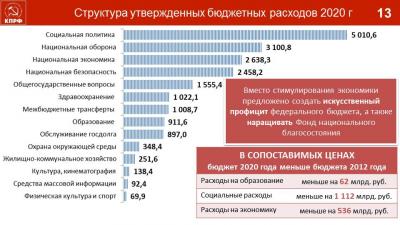 Тогда мы предлагаем это сегодняшнее распределение. Тогда наша экономика допустим, мы смотрели 2020 год в предыдущем слайде, мы видели, что на социальную сферу к 2012 году было меньше на 1,1 триллиона, на экономику на 560 триллионов меньше к 2012 году в сопоставимых ценах на образование 62 миллиарда.