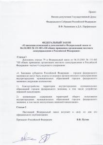 В Совете Госдумы зарегистрировпна вторая "инициатива Обухова-Рашкина-Парфёнова". Суть законопроекта, экспертно проработанного "Народной приемной" Обухова, и внесённого депутатами Госдумы Рашкиным и Парфеновым, заключается в дополнении 79-й статьи Федерального закона № 131-ФЗ "Об общих принципах организации местного самоуправления в Российской Федерации».