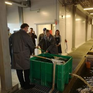 Чуть позже в селе Богдашкино Чердаклинского района состоялось открытие рыбоводного комплекса «Янтарный ручей», который был построен с использованием технологии установок замкнутого водоснабжения. Комплекс будет включать в себя несколько цехов, а также открытые пруды. Владимир Кашин и Алексей Русских произвели символический запуск малька и побеседовали с работниками комплекса.