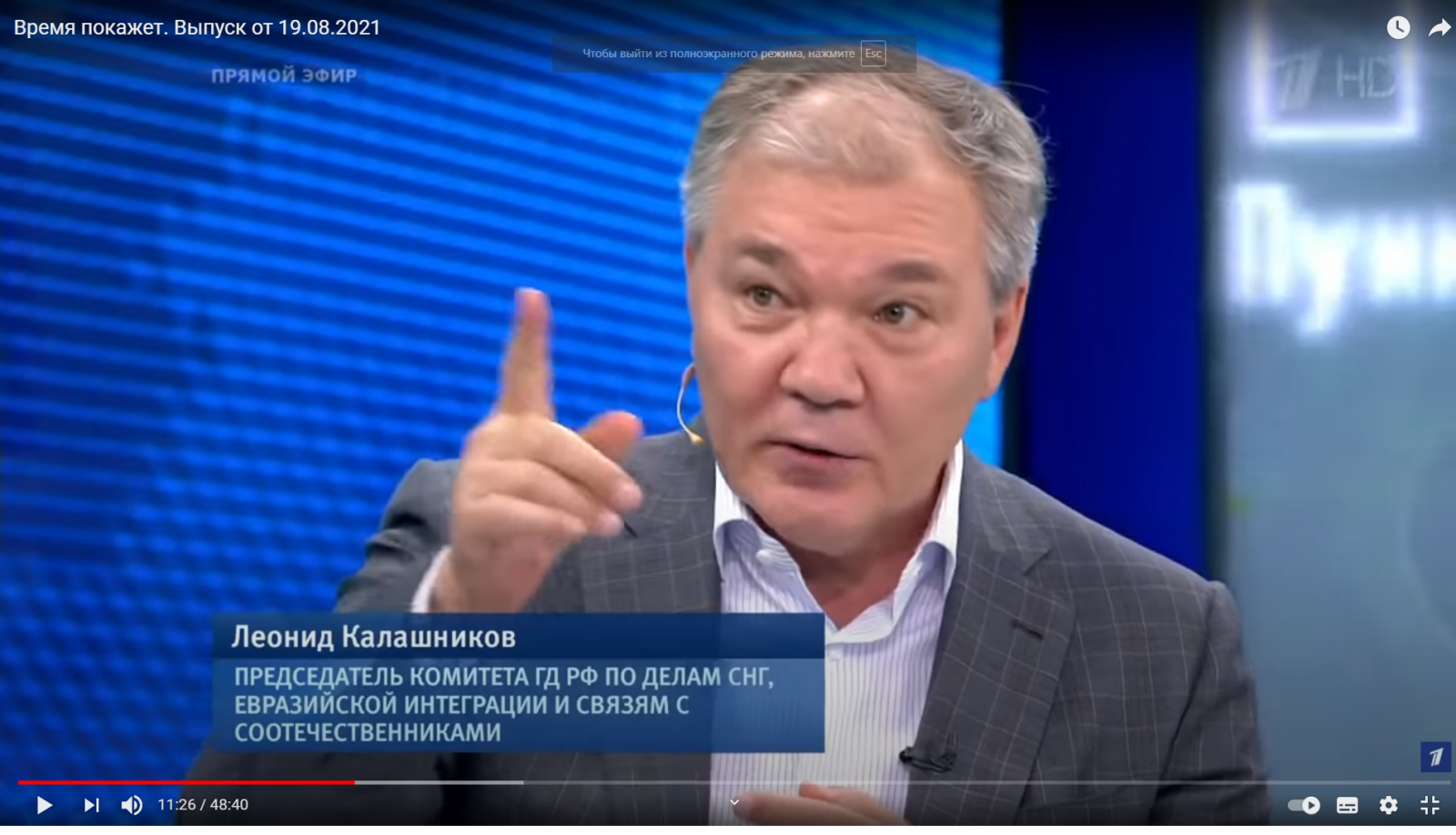 Леонид Калашников 19 августа с.г. принял участие в программе «Время покажет» на первом телеканале. Тема программы: 30 лет назад прошло с тех пор, как создавался ГКЧП. Можем ли мы сейчас осознать, что это было? Как после этого изменился мир, как изменились мы? Каким стал расклад сил во всем мире? Можем ли мы сейчас утвердиться на позициях, на которых когда-то был СССР? Или мы так до сих пор и не дотягиваем?