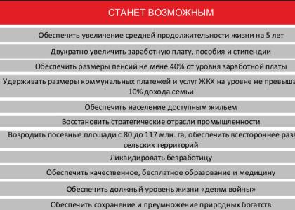 Именно село всегда обеспечивало стране и всем гражданам продовольственную и, следовательно, национальную безопасность. Сегодня российское село находится в крайне бедственном положении. Наша команда готова активно взяться за работу по восстановлению российской деревни. Для этого все необходимое в нашей стране имеется, включая и деньги, которые следует достать из карманов олигархов, а также из резервов и направить на развитие экономики и социальной сферы.