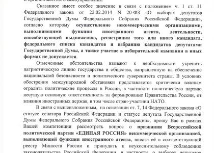 В запросе, в частности, отмечается, что КПРФ всегда последовательно выступала за политику «национализации элит» и пресечения вредоносного иностранного влияния на процессы внутри России.