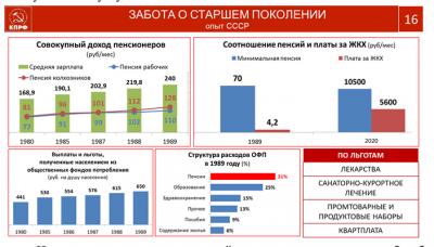 Конечно, социальные проблемы здесь рядом. Но мы с вами создали организацию «Дети войны», у нас около 2 миллионов ассоциированных членов. Мы сегодня имеем в абсолютном большинстве регионов свои соответствующие законы о поддержке детей войны. И по пенсионерам, посмотрите, пенсия в Советском Союзе 1980-1989 годы практически составляла 50% от средней заработной платы. Посмотрите, 70 рублей - была минимальная пенсия, из которой любой ветеран мог оплатить 4 рубля на услуги ЖКХ. А сегодняшние расходы на ЖКХ от размера пенсии составляют, практически, 50%. Каждый человек в СССР получал 600 рублей из общественных фондов: бесплатное образование, здравоохранение, путёвка, тарифы копеечные, и всё остальное.