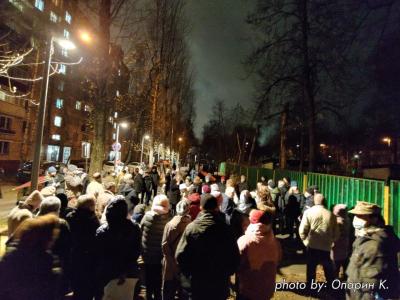 Сотни жителей московского района Гольяново, что в Восточном административном округе, пришли на встречу с депутатом Сергеем Обуховым против прорубки автомагистрали через школу и дома.