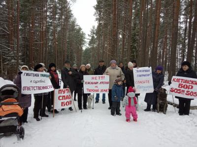 На защиту Клетинского бора встали местные жители. В борьбу за его спасение активно включились и тверские коммунисты. Был подан иск в суд, который своим решением отменил распоряжение губернатора и четко указал, что площадь (741 га) и границы ООПТ «Бор Клетинский» установлены и описаны в его паспорте и учетной карточке. Однако местные чиновники отказались возвращать отданным в частные руки землям их прежний статус, а сами застройщики все время пытаются возобновить работы: копают рвы, ставят столбы, завозят бетонные плиты на берег Волги. Не имея возможности в открытую рубить вековые сосны, они уничтожают их самым подлым и варварским способом – подпиливают ствол и ждут, когда засохшее дерево упадет от ветра.