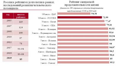 Как видим, еще до пандемии в одном случае мы были 85-ми, а в другом – 118-ми. Учитывая, что сейчас Россия занимает 3-е место в мире по смертности в расчете на каждую тысячу граждан, показатели, скорее всего, ухудшатся из-за пандемии и ее последствий.
