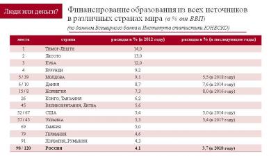 Вот вам данные ЮНЕСКО и Мирового банка: в 2012 году по этому показателю мы занимали 98-е место, а в 2018 – 120-е.