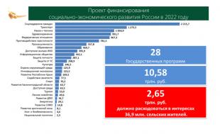 И при этом во внесенном Правительством проекте бюджета мы видим продолжение урезания расходов на эту важнейшую государственную программу, целями которой поставлено сохранение сельского населения, ликвидация сельской бедности, жилищное строительство, развитие инженерной и социальной инфраструктуры сельских территорий. Вместо 193 млрд. рублей на 2022 год предложено выделить всего 36, плюс принятыми сегодня поправками 4 млрд. рублей, итого 40 млрд. рублей. На 153 млрд. рублей меньше! Аналогично на 2023 и 2024 годы.