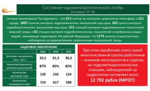 Масштабы сети мониторинга показаны на слайде, но заработная плата работников на местах, в отделах, на гидрометеорологических станциях, на гидропостах, сегодня не превышает прожиточный минимум! По этой причину служба теряет ценнейшие кадры, обеспечивающие получение важнейших первичных данных.